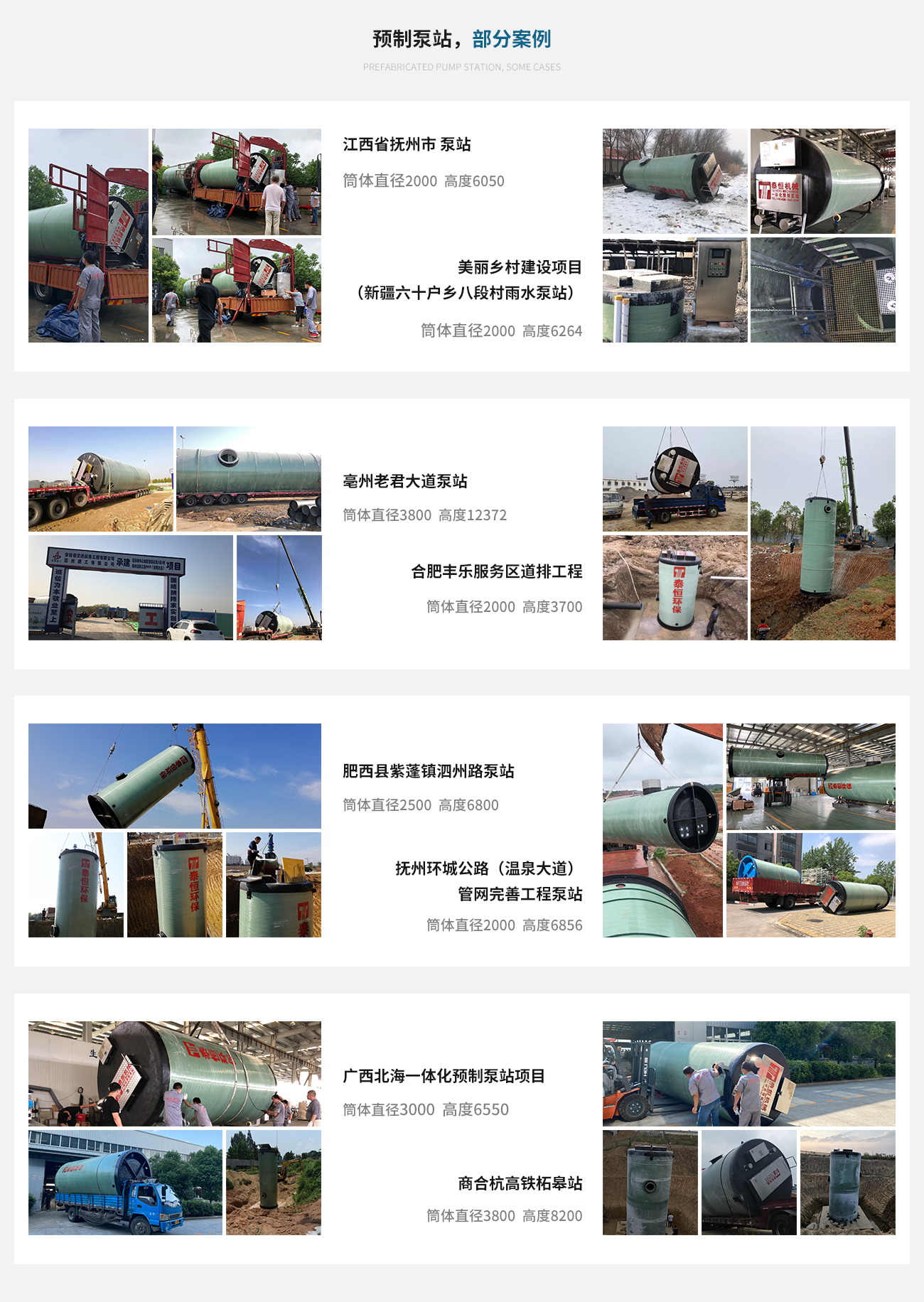 預(yù)制泵站作為一體化設(shè)備,成套提供:泵站筒體、壓力管道、檢修平臺、檢修爬梯、格柵裝置、耦合系統(tǒng)、通風(fēng)裝置、防滑井蓋等。
